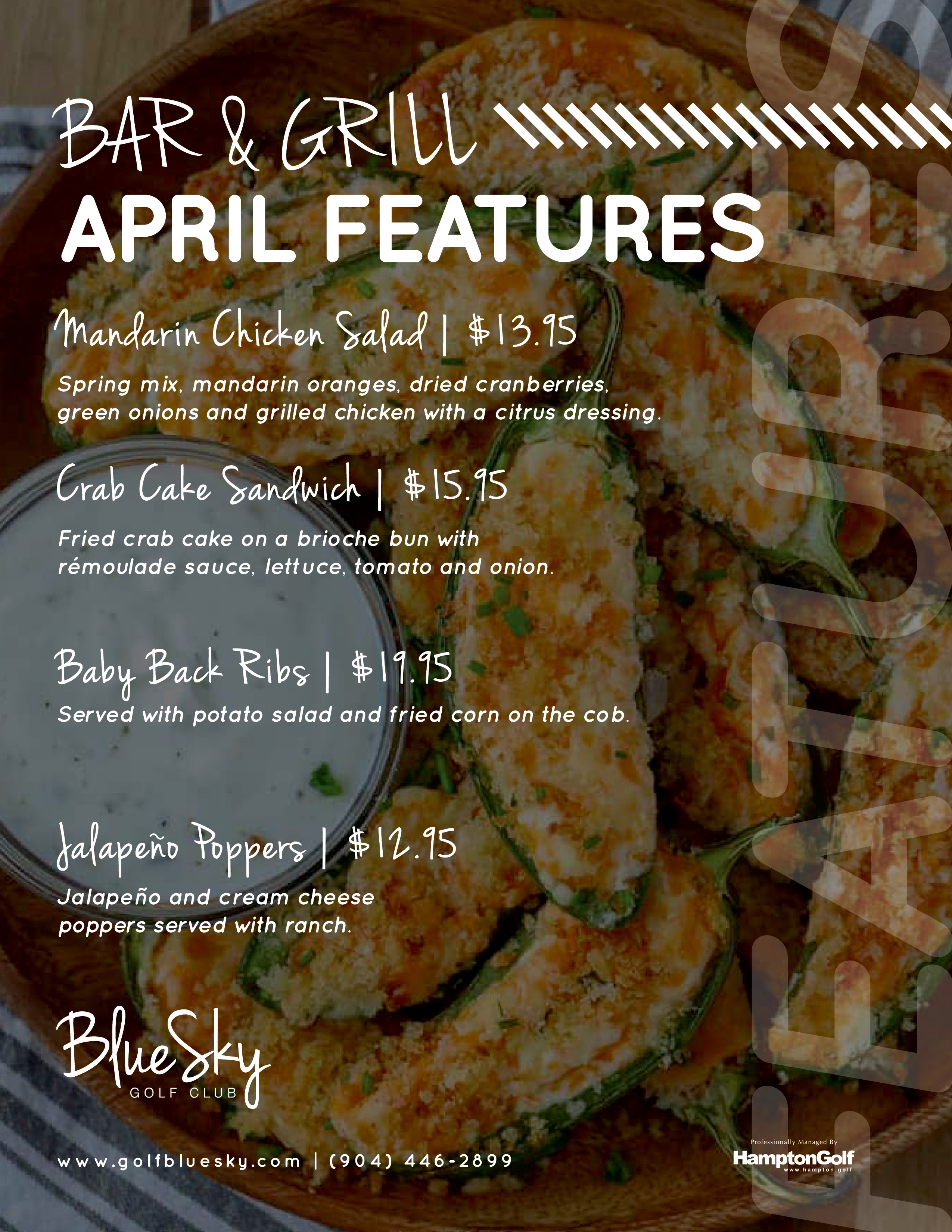 We like to say every day is a new adventure at Blue Sky Golf Course, including in the kitchen! Ask your server what the chef has cooked up special that day when you visit us.